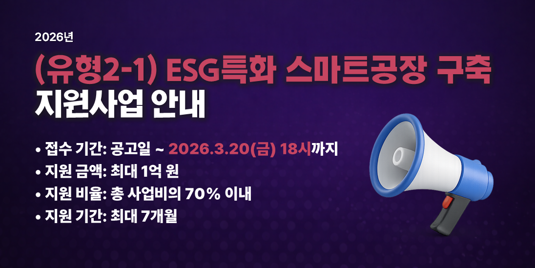 2026년 경기도형 스마트공장 구축 및 컨설팅, 제조AI 지원사업 (유형2-1, ESG특화) 공고 확인하러 가기 ↗